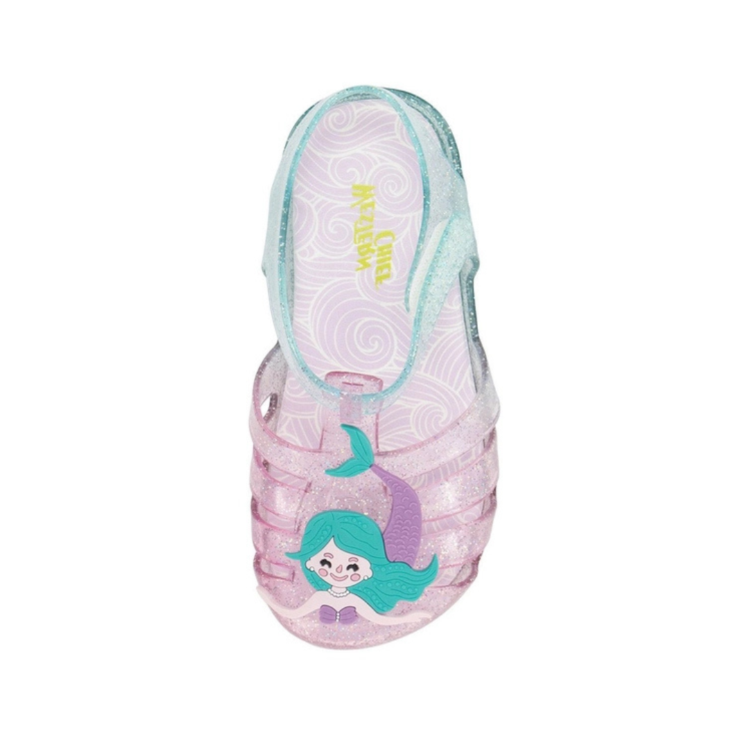 Dive into magical moments with the Western Chief Mermaid Sandal! These enchanting sandals feature a waterproof upper adorned with shimmering glitter that stays put—no flaking, just endless sparkle. Decorative overlays add whimsical charm, while the adjustable hook-and-loop closure keeps little feet secure during playtime. The cushioned insole ensures comfort for all-day adventures, and the best part? Four full-action lights flash with every step, turning ordinary walks into dazzling light shows. Perfect for beach days, pool parties, or any sunny escapade where magic meets movement!